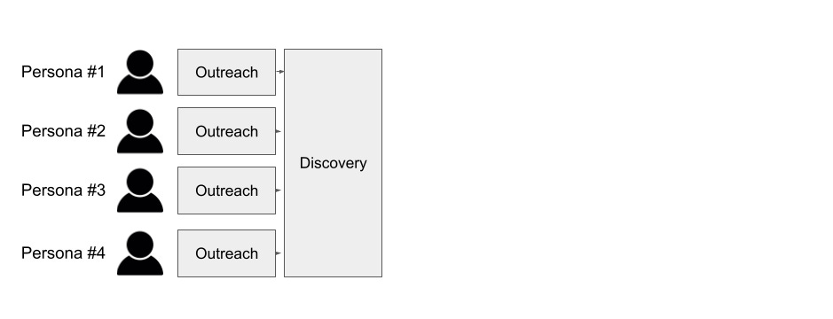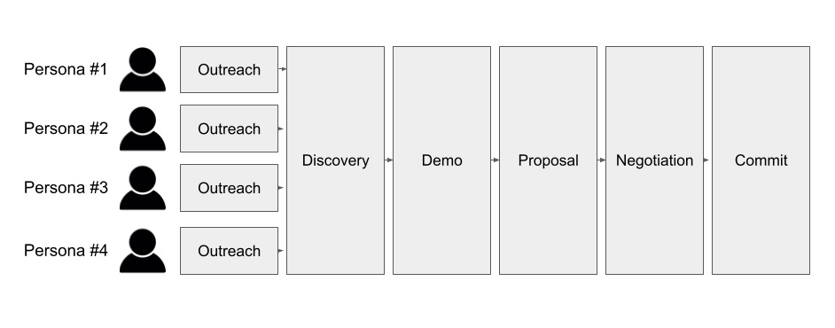 In the discovery stage, this literally means continuing to prospect all personas in parallel while doing discovery with the initial persona.